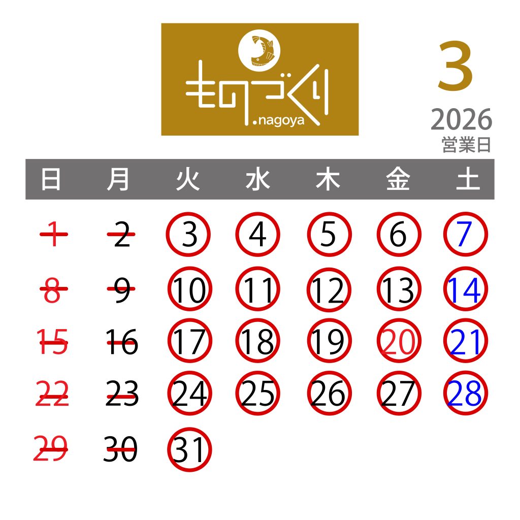 3月は臨時休業なく火曜日〜土曜日の10:00~19:00まで営業いたします。